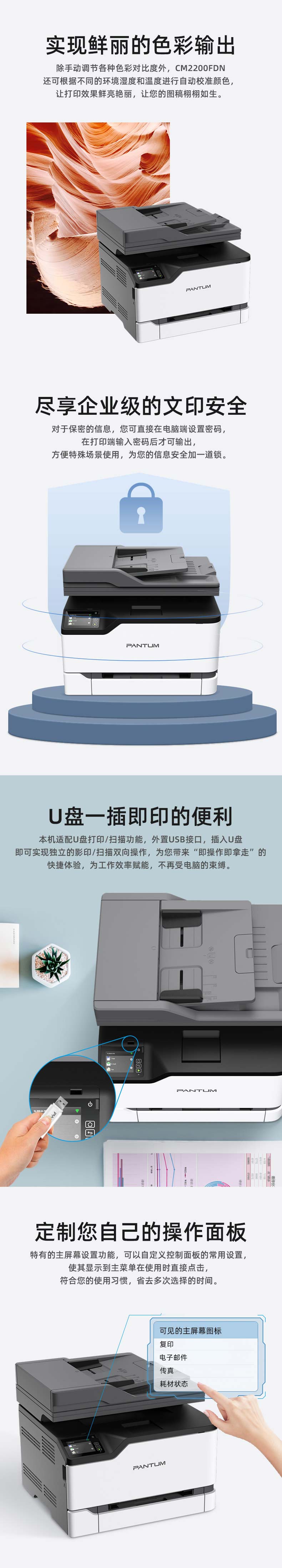 限时密码打印、U盘打印/扫描、定制个性化主屏